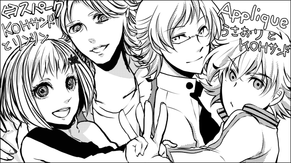 PAGE | 1 2 3 4 5 6 7 | ADMIN | WRITE 2011.10.03 Mon 21:17:18 空折アンソロ2011.10.03 Mon 21:13:37 色鉛筆イラストアンソロ2011.09.18 Sun 12:49:33 えぬとこカレンダー2011.09.03 Sat 09:19:33 スパーク2011.08.26 Fri 06:01:59 夏コミ&夏インテお疲れ様でした!↑友人にダム様を描いてもらう等価交換として描いたうたプリのなっちゃんです。 遅くなりましたが、夏コミ&夏インテお疲れ様でした! スペースに寄って頂いた方には感謝しきれません!! 特に夏コミでスペースに寄っていただきた方、自分を訪ねてきてくださいました方、本当にスペースに居ない時が多くてすいませんでした。 自分自身も結構いっぱいいっぱいでスケブも売り子を通して断ってしまった方がいらっしゃるかもしれません・・・。 その点インテではそんなことはあまりなかったのかなぁと自身では思います。 この夏は結構グタグダだったので、これをちょっと反省して、今後のイベントはなるべくスペースにいるようにしますので、今後ともよろしくお願いします。 11月末のピカぱれまでポケの扱えるイベントには出ませんので、10月末~11月上旬までポケ本を自家通販します。(土日辺りにフォーム貼り付けます) (タイバニ本は9月神戸オンリと11月ゴネク2に参加するのでそちらで手に取っていただければと思います) よければこの機会にご利用ください。 2011.08.21 Sun 15:00:00 【コミックマーケット80&スパコミ関西17】詳細当日のポスターです。 これを目印にお越しくだされば幸いです(*´ω`*) スペース№ 【コミケ80(8/13)】 東H‐03b/ちゃひずま 【スパコミ関西17(8/21)】 4号館 コ‐05b/ちゃひずま *新刊* 「楽しい海の遊びかた」 P28・¥300 ポケスペ、ほぼオールキャラ本。 青・黄・水晶・蒼・白金・白・ベル中心。 少しだけ男子チームも出てきます。 三月うさぎさんと合作です。 「m.d.m.s」 P116・¥1200 pkmnBW、男主人公×Nのアンソロジー。 総勢16名+1名によるギャグ有、シリアス有、ほのぼの有のアンソロとなっています。 ※お買い上げの方には不繊布トートバッグと執筆者描き下ろしポストカードセット(14種)を差し上げます。 十分に数は用意しておりますが、なくなってしまった場合は配布終了致します。 「好きこそ物の上手なれ」 P24・¥300 T&B、兎折本。 バニーに憧れて頑張るイワンの話と酔っ払いイワンの話です。 ※お買い上げの方には兎折団扇を差し上げます。 暑い夏を兎折団扇で快適に過ごしてください。 小数部しか作っていませんので、なくなり次第配布終了。 「ASUKA」 P24・¥400 スクライド、橘あすか本。 今冬に発売されるオルタレイションの記念本。 あすか+かずま、シェリル、クーガー、キャミィのショートストーリー。 アヤトリさんと合同本です。 *既刊* 「Erica」 P32・¥500 「だってすきなんだからしょうがないじゃん」 P12・¥100 ※残部少 *委託* 「はやくげんきになって」 P24・¥400 T&B、リンリンスカイ本。 アヤトリさんの本です。 *無料配布* ・ポケスペオンリーイベント「Super Colors」の告知チラシ ・pkmnカレンダー2012の告知チラシ (共に机上に置いておくのでお気軽にお取りください) ・ポスター絵のポスカorしおり・・・・まだ考え中。当日ないかもしれません。 *スケブについて* 「スケブ受付中」等の表示はしていませんが、基本いつでもお受け致します。 ジャンルはpkmnでもT&Bでもどちらでも構いません。 売り子に三月うさぎさんも来ていますので、もし彼女に描いてほしいと希望があればお気軽にお申しください。 きっと描いてくれると思います。 開始30分~1時間は私は狩りに出ます。 その間、全て売り子さんに任せる予定ですので、私に御用のある方は1時間経ってから来てくださいますといるかと思います。 私がいない場合でもスケブはいつでも受け付けていますので、その辺はお気になさらずに。 他各本のサンプル等はお手数ですが、支部の方でお願いします。 今回も色々と細々としてる金額なので、小銭のご用意をお願いします! 来られる方はよろしくお願いします! |