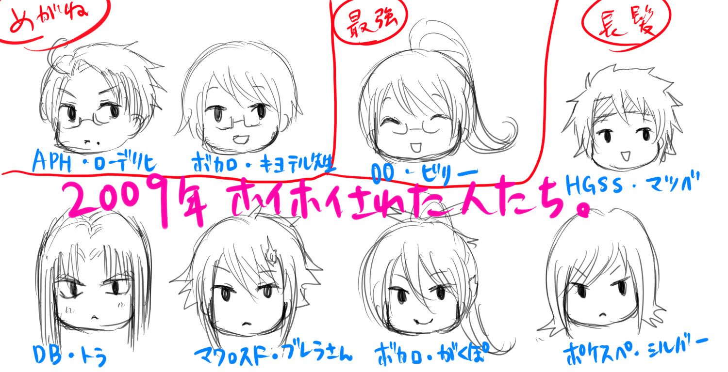 しかもめちゃくちゃ久しぶりなメンツ&自分以外完全なるパンピーです。 ヲタクの自分がまじって、ちゃんと話せるか心配です。 きっと恋愛話とかなるんだろうなぁとか思ったり。 恋愛?私はずっとビリーに恋してます。 リア充ぶってきます←← あ、そういえば表紙だけ発注しました! これで本文ないとかになったらマジ笑えるw いつもよりは多少表紙が綺麗なはず……! といってもエンボス梨目は初めてなんでどうなるかさっぱりわからん。 友人にも「暗っ!」と一言。 そりゃ黒のカラーインク、ボトボト紙に塗りたくりましたからw 今さら背景白い感じでもよかったなぁとか若干後悔。 ちゃんと無線綴じにしますよ………! オフ本に見えるようにします。 卒制でぶ厚い上製本を作り上げたおかげか、また製本レベルが上がったような気がします。 気がするだけ。 あー今度は本文の紙注文しなきゃだ。 年末年始ってどうしても休みになっちゃうから、早めの行動しなきゃですね………! ついでに発行出来るかどうかもわからないのにオフページ更新しときました(笑 2009.12.20 Sun 23:59:59 ★年賀状企画★