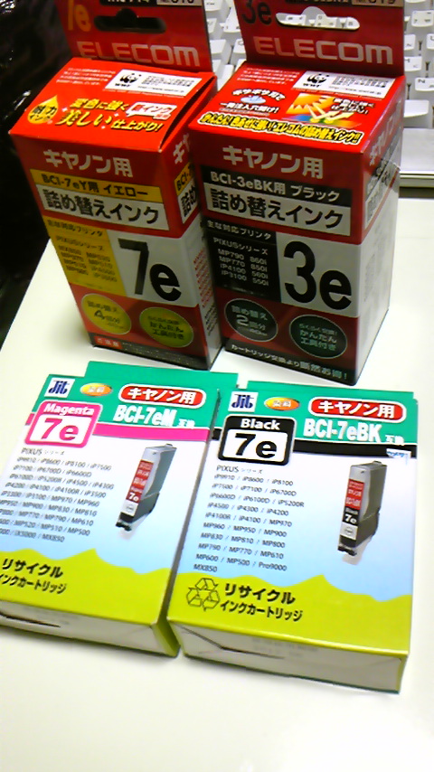 また一気に減ってヤバヤバなので、買ってきました。 あずまのプリンターちゃんはキャノンです。 自分のパソコンに繋いでるのはキャノンですが、エプソンくんも持ってたりします。 エプソンの方が光沢系は強い(と思ってる)ので好きですが、インクの減りが異常に早いのでキャノンちゃんに頼りっきりです。 よく働いてくれてます、彼女。 でもそんなに色ないです。 ブラック2色とCMY。 最低限の色。 詰め替え用を愛用してるんですが、でもなぜかブラックとマゼンタだけ、詰め替えるとおかしい。 えらいこっちゃになります。 他はいけるのにナゼ……。 本当はちゃんとしたメーカーから出てるやつのほうがいいんですが、そんな回マネーもあるわけなく、エコの方使ってます。 まぁ光沢愛用者じゃないので、気にするほど色大差はないと思い込んでます。 インク安くなりゃいいのに。。 そしてレーザーがほしい……………… 新刊間に合うか危うすぎる………! どうしよう! あと1週間しかないぜ!! それなのに火曜~水曜、朝までグダグダ家飲み会するとか、己の愚かさに泣くぜ☆ 遊び紙とか諸々買ってきましたが、夏色配色で笑ったw 少林少女の黄色いユニホーム、可愛いvv |