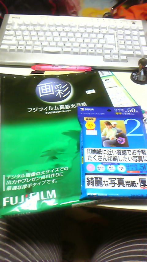 完全におかしかったらやり直すんですが、別に色合いは全然おかしくないのでそのまま使います;; 紫がやたらキツくなった。。 まぁそれだけ見たらいい感じな仕上がりなんですけどね(笑) そしてそして、二度と光沢紙の表紙はしない。 表紙はラミネートするのでインクジェットクオリティーです。 本文はいつも通りレーザー。 今日コピー。 そろそろ家出なければ。 この本は再販なし。 できったら終わりです。 うん、部数もかなり少ないしー。 大阪で全部はけるのは難しいだろうから、スパコミまでですかね~。 明日のイベントでそれだけはけるかわからんが、まぁそんなにはハケけないでしょう(笑) そういえば友人に絶対不自由宣言。のことを表紙詐欺やと言われましたw エロいの入ってそうな表紙なのに一切入ってないからのこと。 入る予定だったのに結局省いちゃったんですよw また書き直すわけにはいかないしー。 こんなんでも全年齢対象w 2009.03.20 Fri 18:26:41 あなたの捕まえたいものは何ですか?2009.03.20 Fri 05:30:09 表紙。イベント2日前にしてようやく表紙完成・・・・・。 何時間かけてんだって感じです。 その割りにはうーんな仕上がり。 でももうどうしようもないので、このまま。。 光沢紙に試し刷りしたら、えらいテカッテカで変な感じ。 テカテカなんは当たり前なんですけどー。 これ他の4つと並べたら絶対浮く・・・・!! 結局、リボンズ+ビリーの本は書けないかなーって感じです。 時間的にもう無理だ。。 今日明日1日引きこもれたらいいんですが、その真逆の出ずっぱなんで、絶対無理。 24話を見て、それでも辻褄が合いそうなら、いつか書こうかと思います。 てか、まだ絶対不自由宣言、3ページ真っ白ですよー。 しかもそこの部分がR18つくのに、入れなかったら、表紙詐欺。 明日コピー・・・・・・・。 *追記* R指定のページを書くのをやめました! やっぱり前日は寝たいというのが本音。 なので、全年齢OKということで・・・・・・・・・。 これで余裕が出来たので、ペーパーとか他色々出来そうです。 2009.03.19 Thu 18:12:02 愚痴しょーもないオフの愚痴。