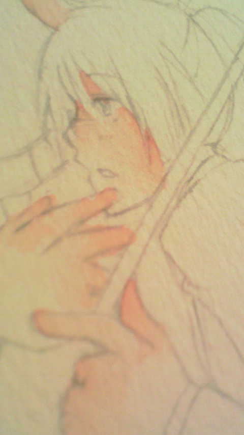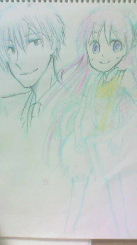 ちなみに女の子主人公。 ひさしぶりにオリジナル。(←課題やからオリジナルじゃないとあかんが どうしても女の子の顔が定まらない。描く度に違う女の子になる。これもじゃっかん歪んでるし。 この課題はすごく趣味に走ってると思う。 いや、趣味だな。 大体のストーリー案を先生に説明するとき、かなり勇気出したよ。こんなオープンに漫画絵で、漫画を描くのは初めて。課題で絶対にしない。(課題は大概風景画をよく描く宥輝) 可愛く女の子を描けるかが本当に心配だ……… 今すごく欲しいものがあるが、今月はダブルアタックを出すと決めてたから、今のところ諦めようと思う。画材も買わなんだいけんしー。。 昨日、通販で頼んだ尊敬するイラストレーターさんの画集が届いた。好きだからここはぽーんと購入。でもってニヤニヤvv ちょっとまた水彩絵がプチマイブームになりそうな予感☆ 今めちゃくちゃ水彩触りたい衝動が……… 2008.06.03 Tue 02:05:56 メイキング。ずっと前に言っていた、水彩のメイキングを今さらし始めました。